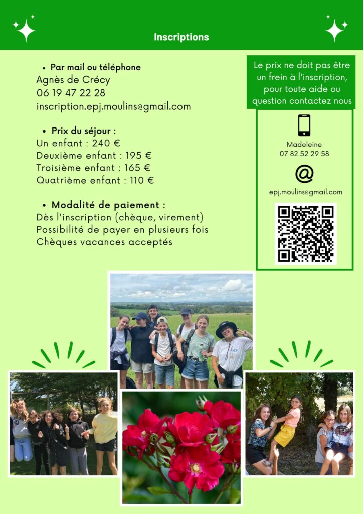Inscriptions et renseignements par mail : inscription.epj.moulins@gmail.com